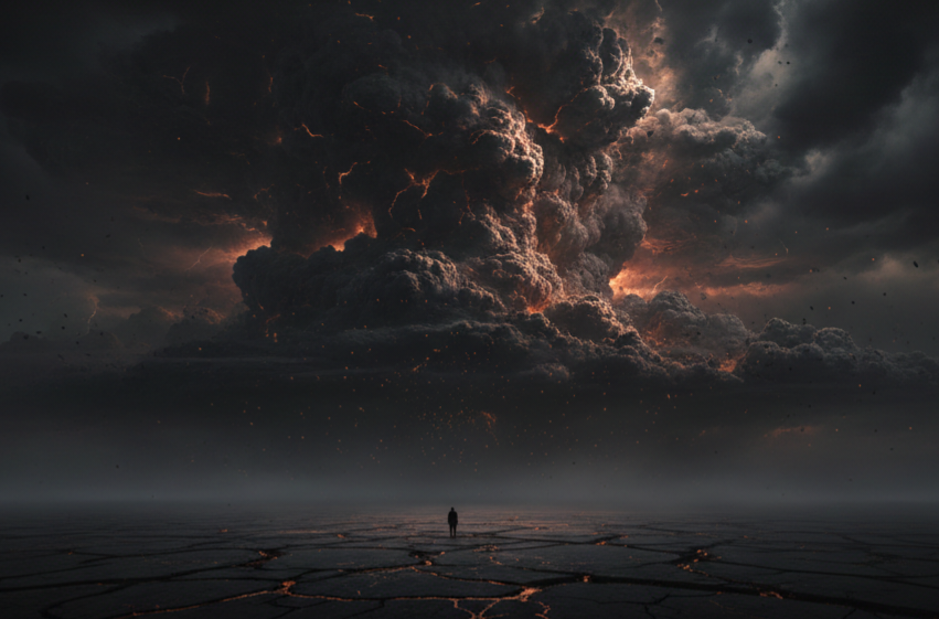 „Dark Apocalypse“ steht für Endzeit-Ästhetik, monumentale Energie und visuelle Dramaturgie. Die Kombination aus dunkler Landschaft, glühender Explosion und minimaler Silhouettenfigur erzeugt eine epische Tiefenwirkung und maximale Aufmerksamkeit.