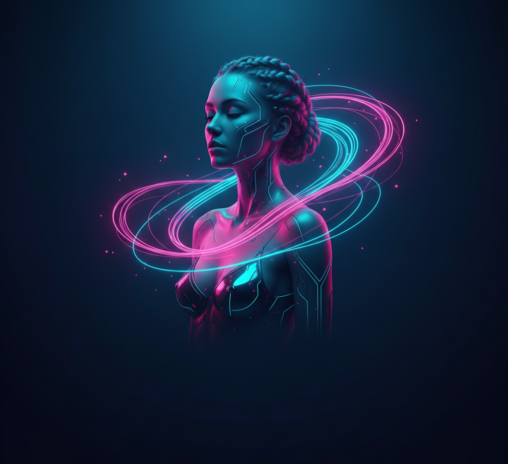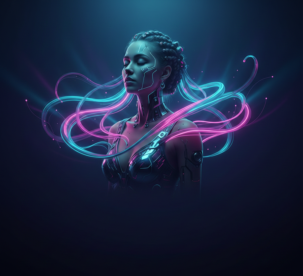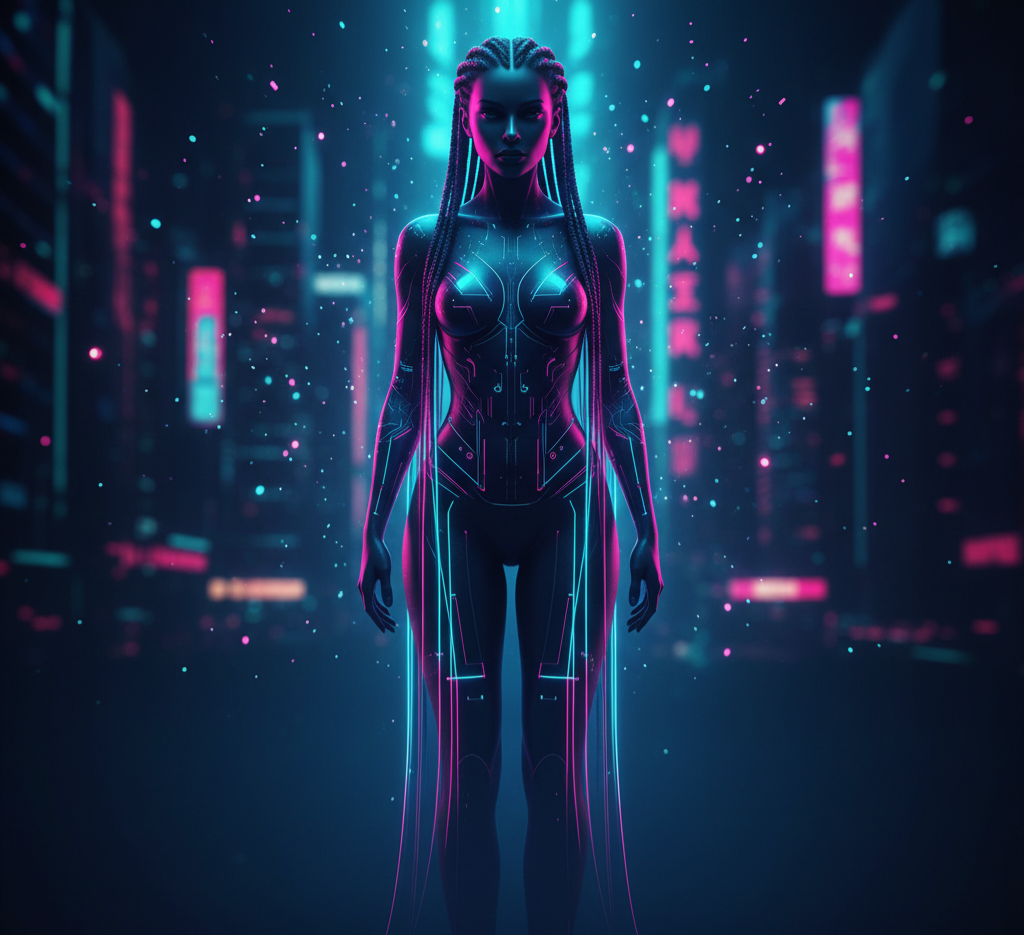 Die visuelle Sprache verbindet futuristische Ästhetik, Neon-Lichtführung und digitale Identitätsdarstellung zu einer markanten, wiedererkennbaren Bildwelt mit hoher visueller Präsenz.