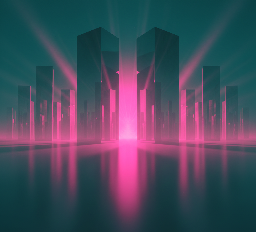 Die Serie verbindet symmetrische Komposition, atmosphärisches Licht, kontrastreiche Magenta- und Türkistöne sowie hochwertige digitale Rendering-Ästhetik. Jedes Artwork ist als starkes visuelles Identitäts-Element für Electronic-Music-Releases, Synthwave-Projekte, Techno-Produktionen, cineastisches Branding und digitale Kampagnen konzipiert.
